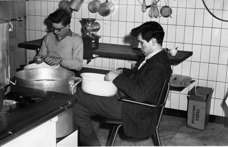 Rechts Jan Panneman. Links ????. Aardappels schillen voor 50 man of meer kon ook strafcorvee zijn.